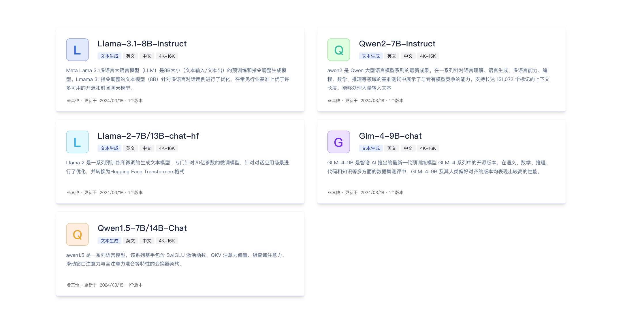 一键调用大模型:UModelVerse「模型广场」为用户提供了一个丰富的开源模型库,这些模型覆盖了多种业务场景和需求。用户可以轻松地在模型广场中浏览、选择并一键调用这些开源模型,无需从头开始开发,大大节省了时间和资源。这种便捷的调用方式,使得企业能够快速利用现有的先进模型技术,加速项目的进展。