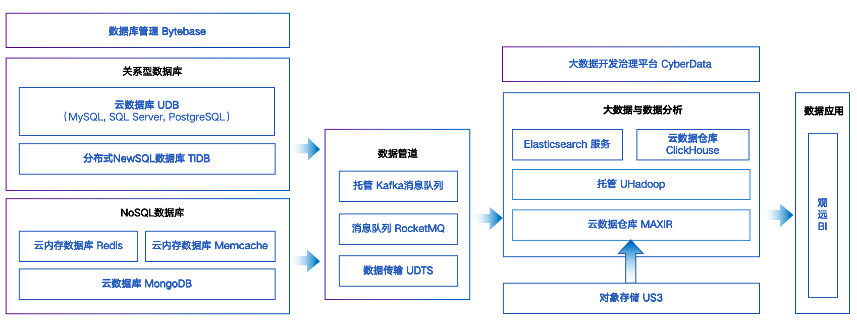 优刻得基于数仓MAXIR、云数据库UDB、消息队列、BI应用、大数据开发治理平台等产品,推出集数据管理、存储、提取、传输、转换、查询、可视化分析于一体的一站式数仓解决方案,助力企业高效管理数据,释放数据价值,加速智能化升级。