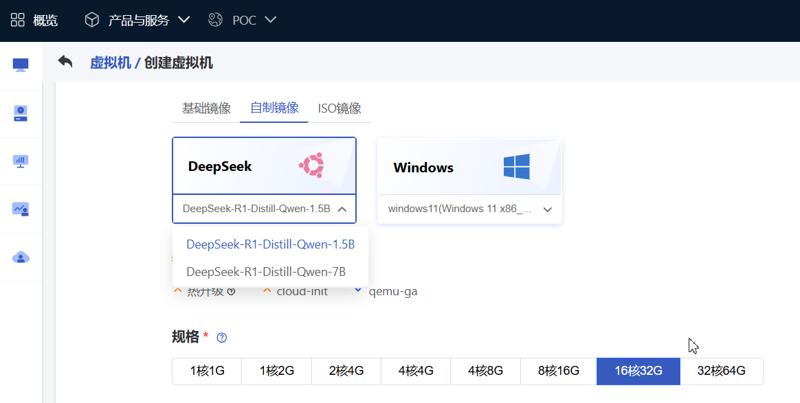 1. 镜像支持 DeepSeek 系列模型:用户可以轻松在私有云环境中创建、部署和管理 DeepSeek 系列模型镜像,便捷地启动数据处理和分析工作负载。