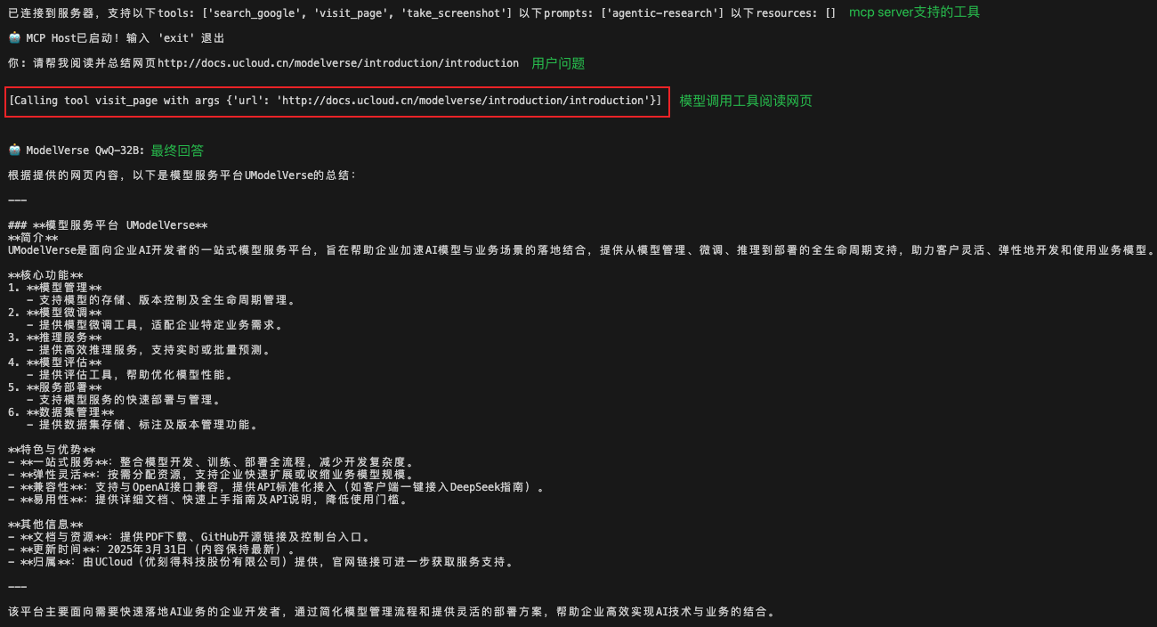使用UModelVerse模型QwQ快速接入MCP Server