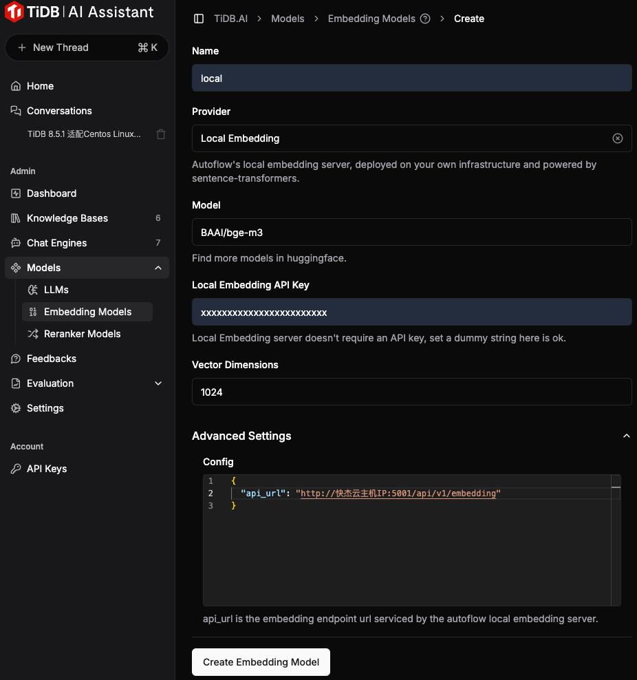 配置local Embedding模型: