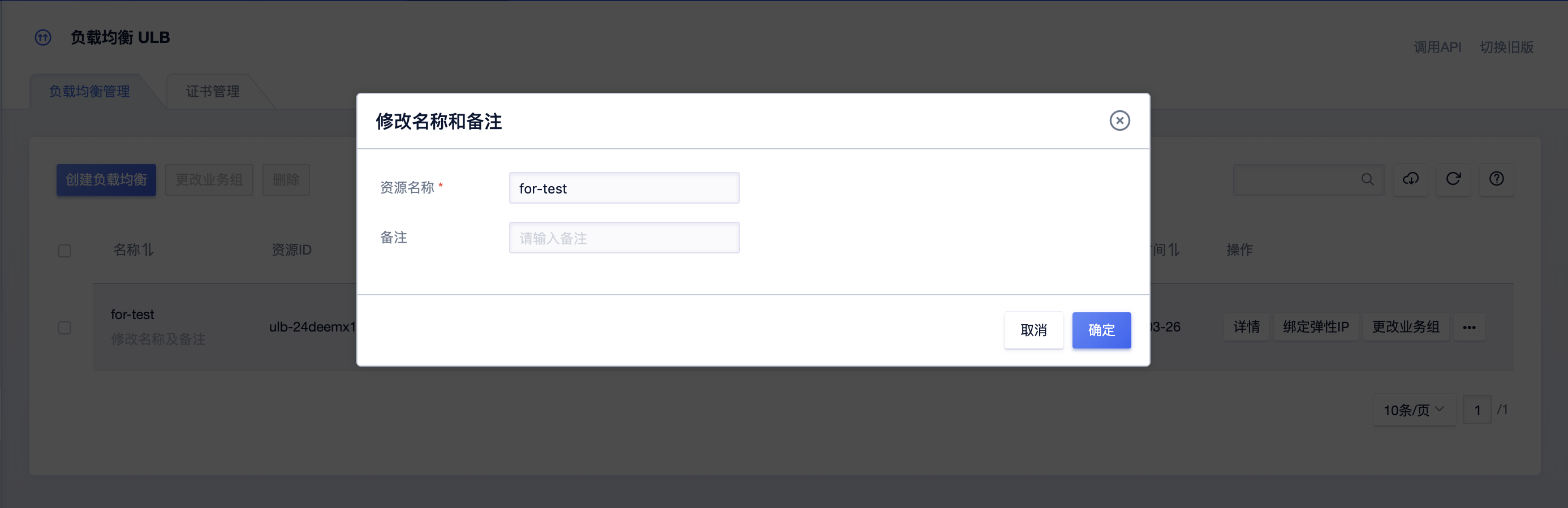 以下列举两种修改名称及备注的方式,分别在ULB列表页、ULB概览页。