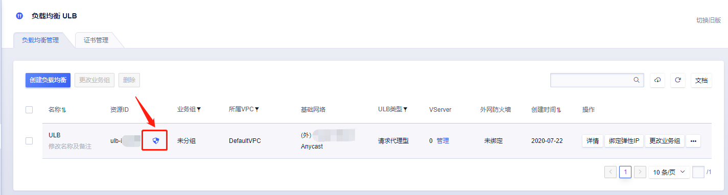 进入负载均衡 ULB页面,可进行ULB实例属性编辑。
