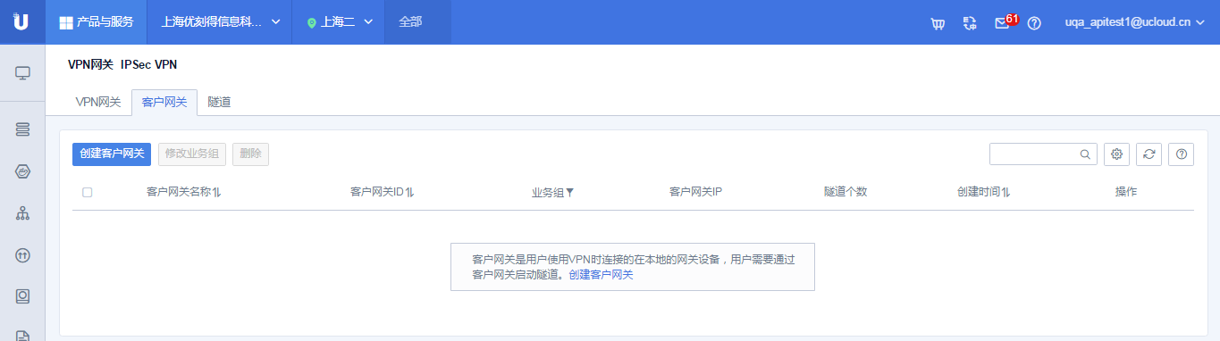 进入“VPN网关”页面后,可点击“创建网关”按钮进行VPN网关的创建。