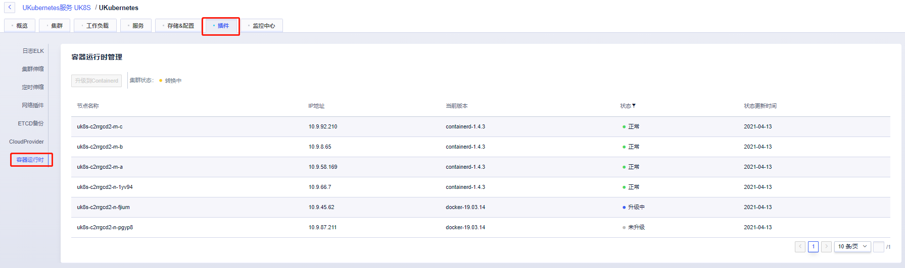 为了让低于 1.19 的 UK8S 集群能够升级到 1.19+,UK8S 也推出容器运行时升级功能,帮助客户平滑升级。