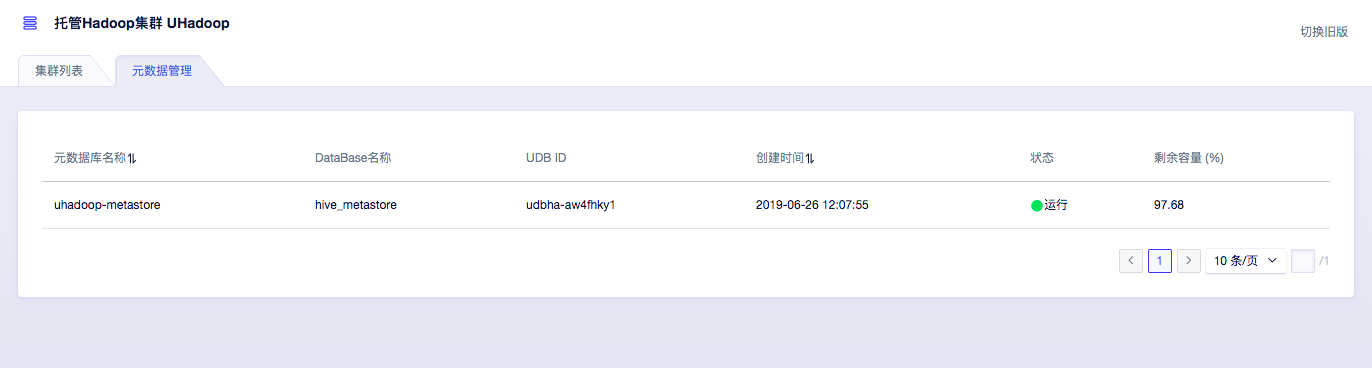 设置完成后,可在【元数据管理】页面查看数据库状态,UDB 名称固定为【uhadoop-metastore】。