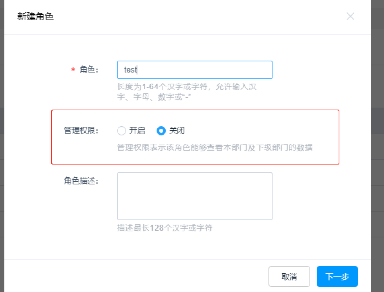 例如:A用户想设置A用户的部门管理员进行授权,需通过A用户所属部门的策略管理员进行策略设置,选择A用户的部门管理员及上级管理员