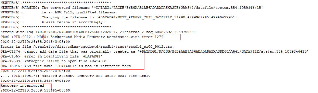 通过沟通知道了,这套CDB模式的19C,之前在主库上创建PDB,备库同步正常。但是最近的一次新建PDB,备库同步就宕掉了。于是接手去看下到底是啥原因?