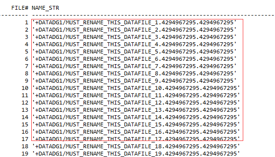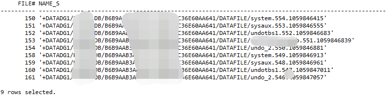 FILE_NAME_CONVERT=(+DATADG1/RACDB/AB29857745280367E0532A3DE60/DATAFILE/system.292.1046608615,+DATADG1,